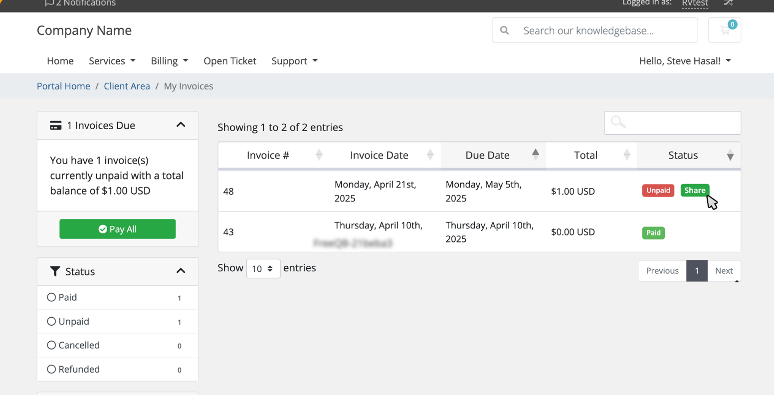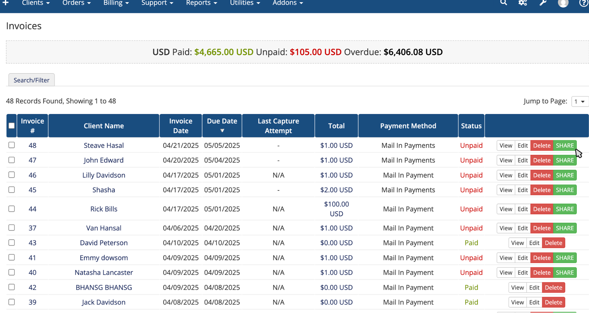 The module enables WHMCS admins and clients to generate secure, shareable links to individual invoice payment pages.